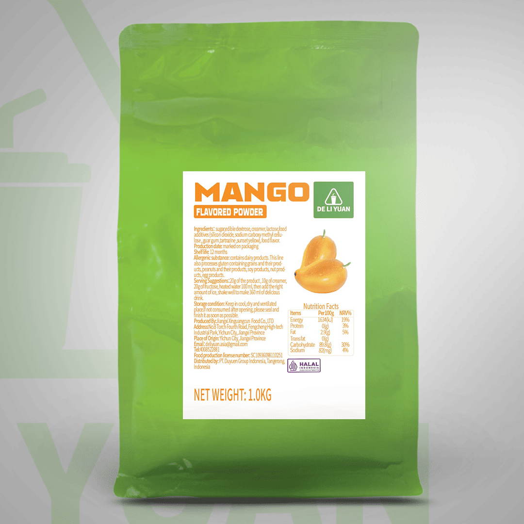 Rasakan sensasi segar buah mangga dalam setiap tegukan dengan Deliyuan Mango Flavored Powder. Dibuat dari bahan-bahan berkualitas dengan perpaduan rasa manis yang pas, produk ini siap menjadi pilihan tepat untuk kreasi minuman segar Anda, baik di kafe, resto, maupun dinikmati di rumah.